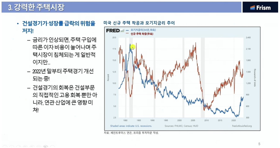 ▶ 항상 그런것은 아니지만, 금리가 올라갈 때에는 신규주택착공이 줄어드는 모습을 보였는데, 지금은 그렇지 않다.