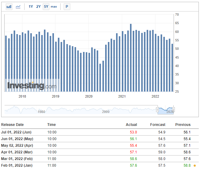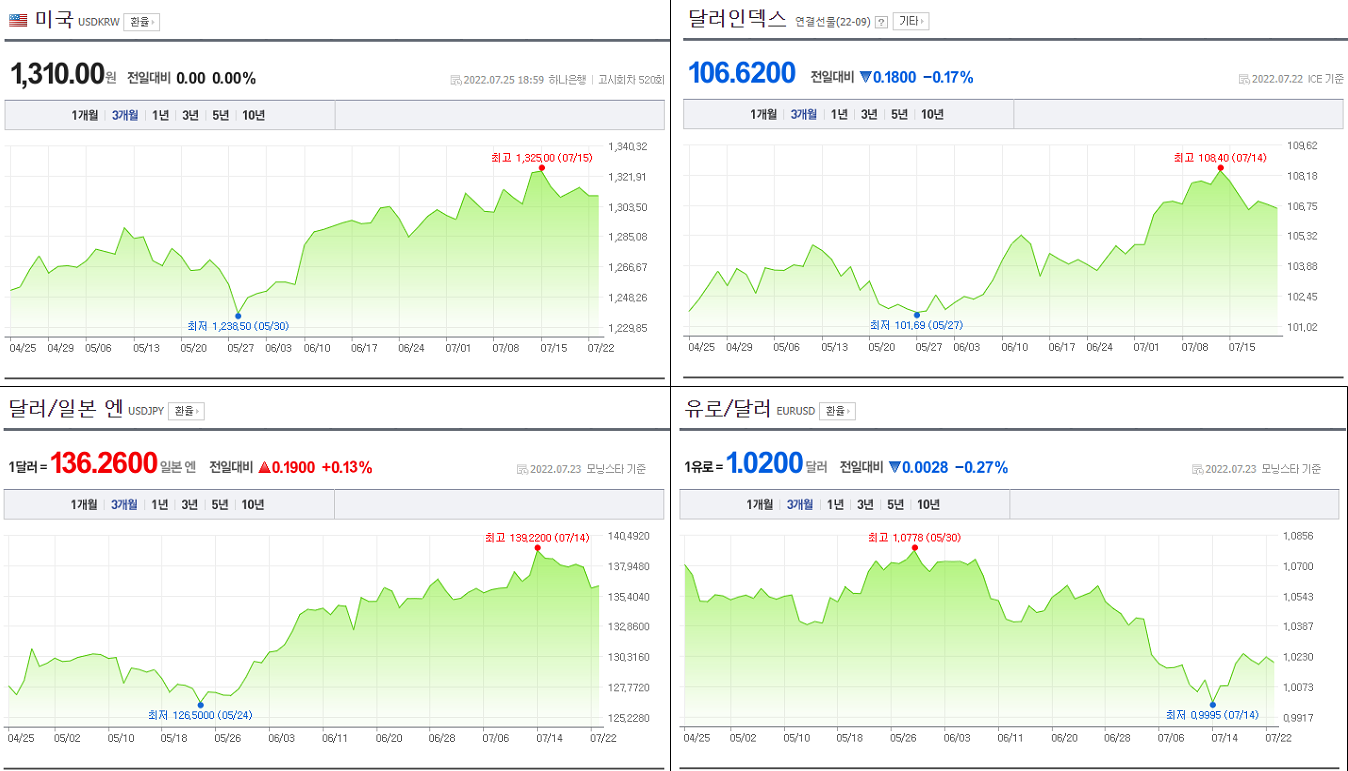 22년 7월 4주차 경제지표 (CPI, PCE, 채권 금리, 경기선행지수, 환율, 원유, 구리, ISM제조업지수)